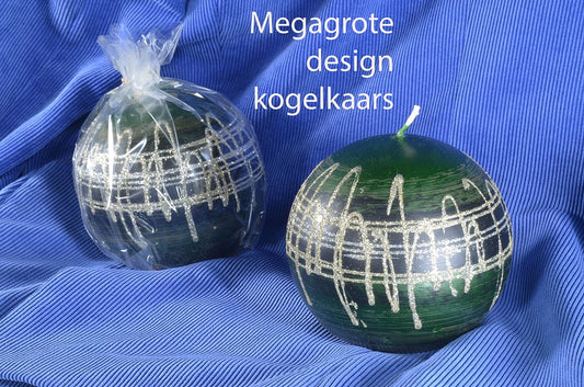 Kogelkaars XXL GROEN METALLIC met zilver, Ø12 cm - Kerst