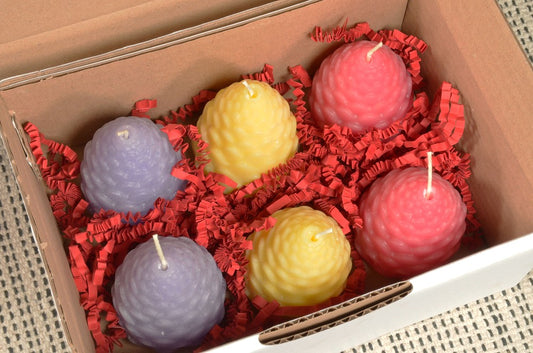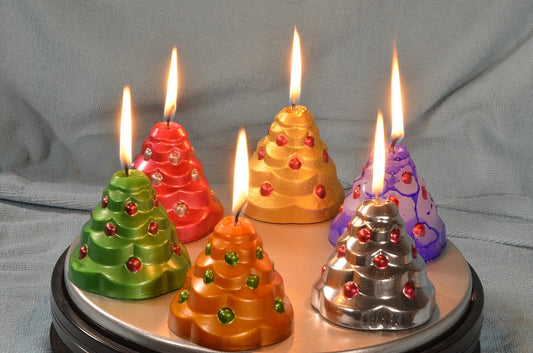 6 stuks verschillende handgemaakte Kerstboom kaarsen