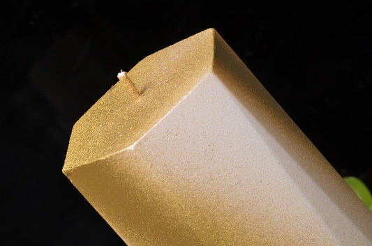 Designkaars "Brussels" in Wit Mat en GOUD Metallic H:30 cm
