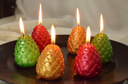 Dennenappel kaars (METALLIC) set van 6 stuks)