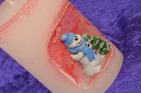 Sneeuwman winterkaars, hoogte: 10,5 cm ROOD - Kerst