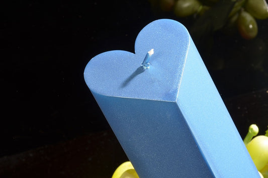 Harten Kaars, BLAUW METALLIC, hoogte: 20cm