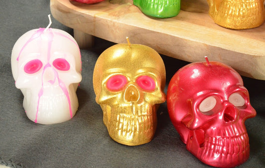 Grote Schedel kaars in GOUD, hoogte: 8 cm