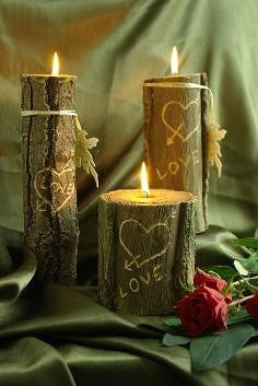 Boomstam kaars, I love You, Smal-Hoog Ø 7cm H 26 cm