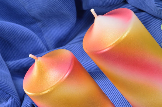Klok kaars XXL, GOUD en LILA, hoogte 19 cm