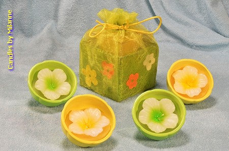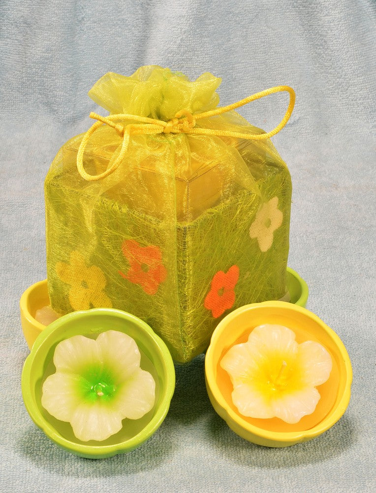 Set van 4 leuke Bloemenkaarsen en prachtige geschenkverpakking.