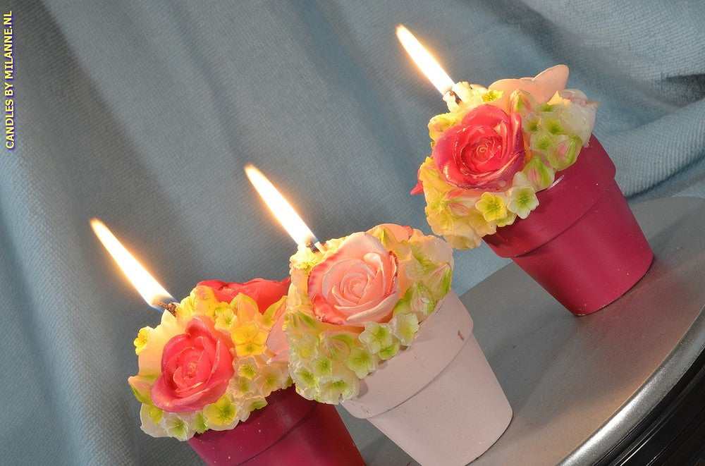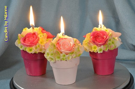 Set van 3 Wilde Rozen kaarsen in een stenen pot. Deze unieke bloemenkaarsen worden u gepresenteerd door Candles by Milanne uit Emmen, Nederland.