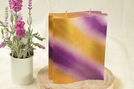 ADAMO kaars met 2 pitten in GOUD, LILA en WIT, H: 18 cm