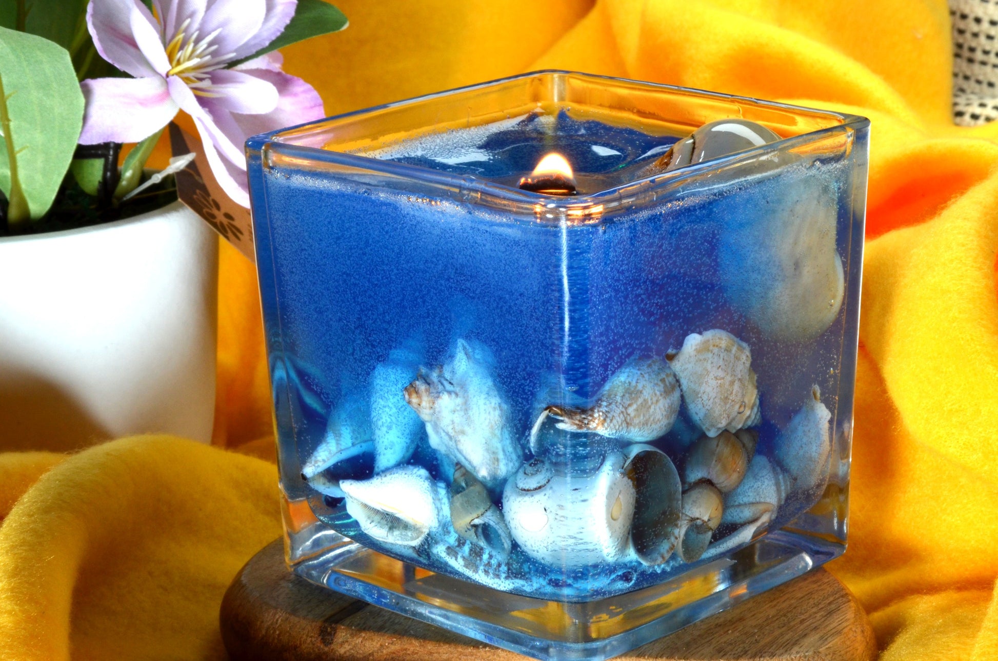 Nieuw in collectie 2025 is deze megagrote Gelkaars met Houten Pit. Het unieke is dat deze kaars is gemaakt met Transparante blauwe Gelwas. Aan de onderzijde zit hij vol met echte exotische schelpen. Een Uiteraard komt deze handgemaakte designkaars in een geschenkverpakking, waardoor het wel een heel exclusief kado is.