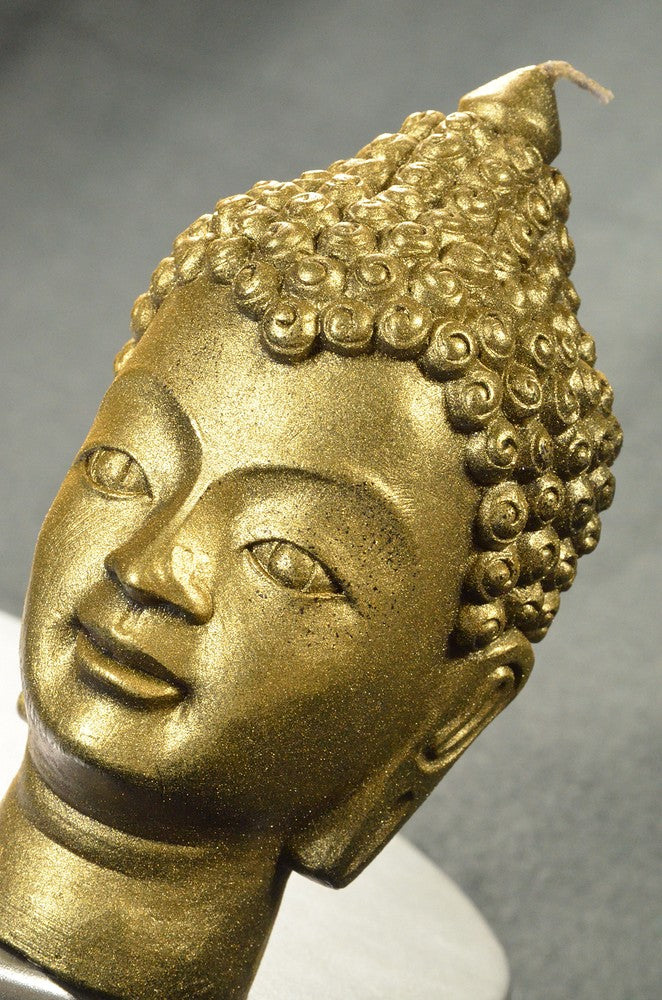 Boeddha hoofd kaars, met de hand gegoten in GOUD metallic. Voor de liefhebber een prachtige kaars en het is natuurlijk niet verplicht om hem aan te steken. Geheel met de hand gemaakt en prachtig afgewerkt.