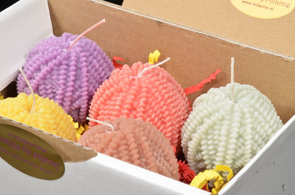 Set van 5 stuks bolletje Wol kaarsen. Ze komen in verschillende kleuren en zijn met de hand gemaakt door het Nederlandse kaarsenhuis Candles by Milanne. U krijgt dus 5 verschillende exclusieve kaarsen voor 1 prijs ! Candles...Meer info