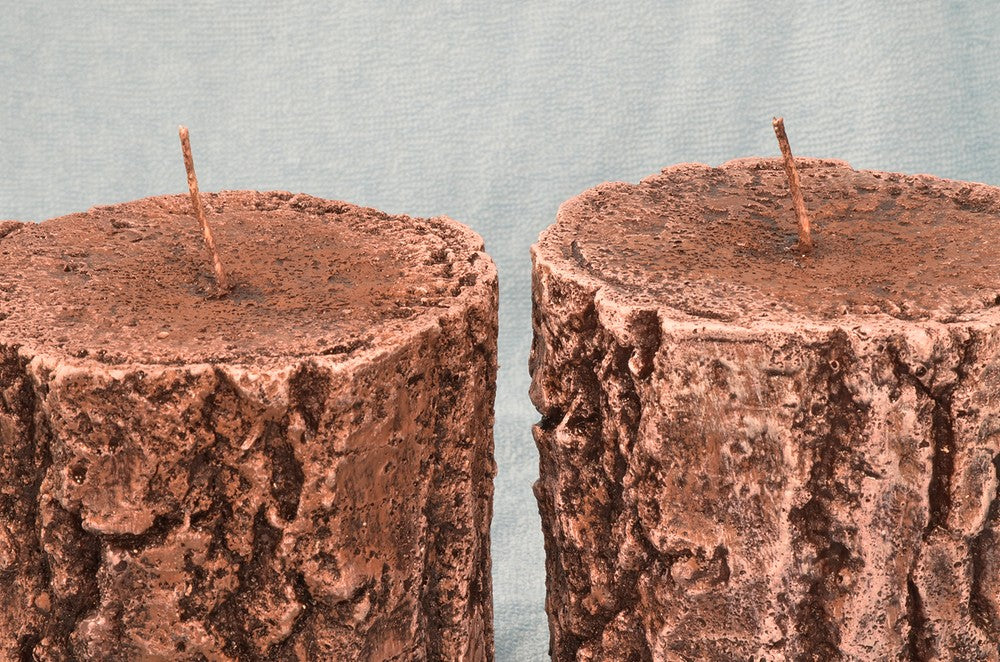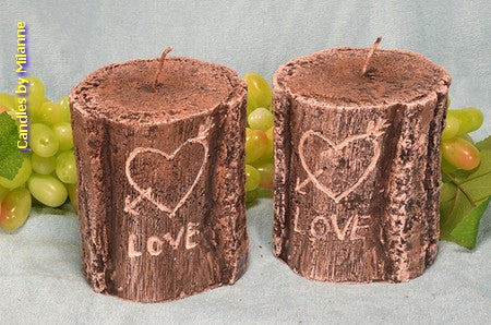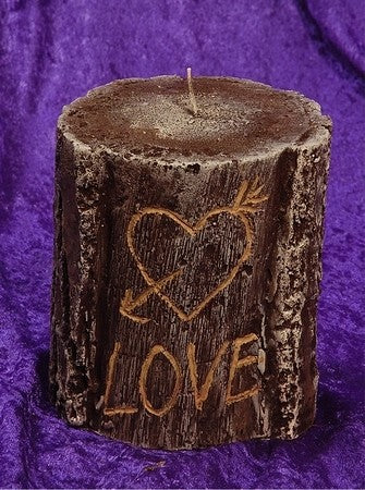Prachtige kaars in de vorm van een boomstam. En dan ook nog met een romantische tekst.