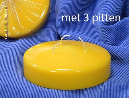 DISCUS kaars met 3 pitten, GEEL HOOGGLANS