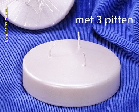 DISCUS kaars met 3 pitten, WIT PEARL METALLIC