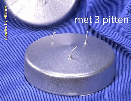 DISCUS kaars met 3 pitten, ZILVER METALLIC