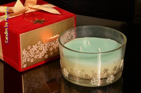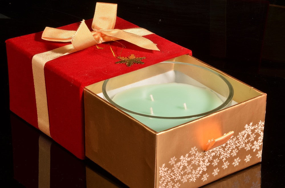 Exclusieve 3 pits kaars ZACHT GROEN in luxe geschenkdoos
