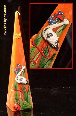 Geboortekaars Ooievaar, piramide, ORANJE, H: 30 cm