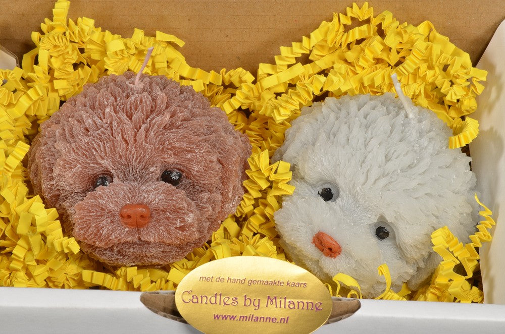 Gezellige hondenkop-kaars (set van 2 stuks)
