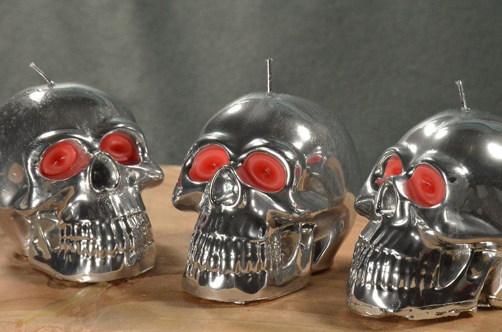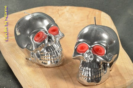 Grote Schedel kaars in SPIEGEL ZILVER hoogte: 8 cm