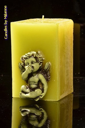 Kaars Engelen, Rechthoek Medium, Groen 8x8x13 cm