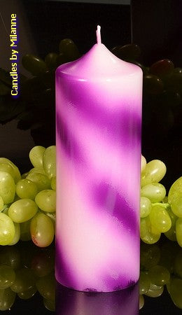 Klok kaars XXL, LILA- WIT, hoogte 19 cm