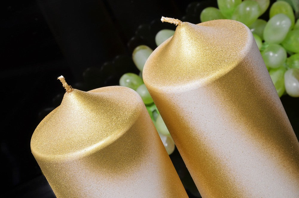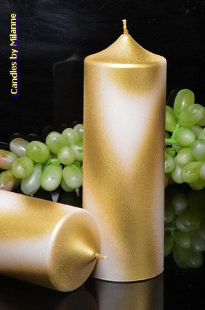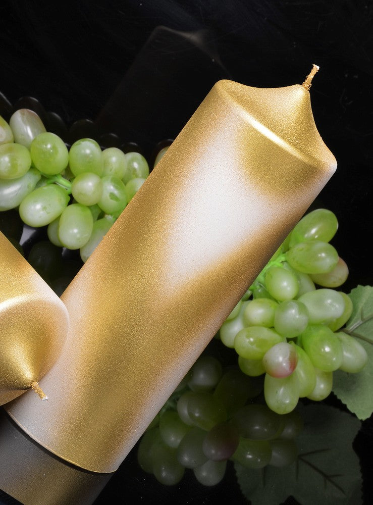 Klok kaars XXL, Perl Mat Wit en GOUD Metallic hoogte 19 cm