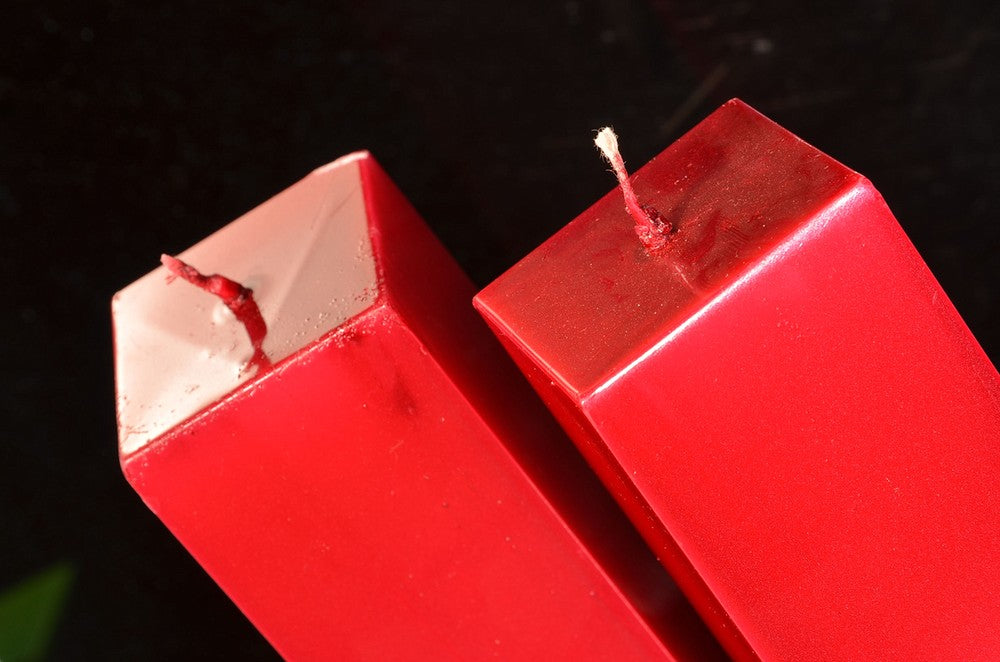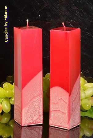 Kwadrant kaarsen, ROOD METALLIC, hoogte 22 cm, 2 STUKS