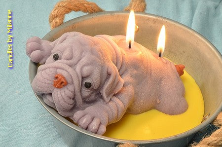 Megagrote "Hond in de Pot" kaars, (GRIJS) handwerk kaars