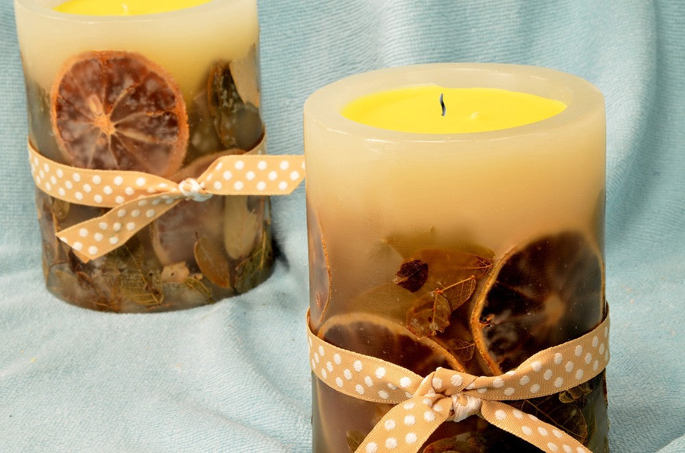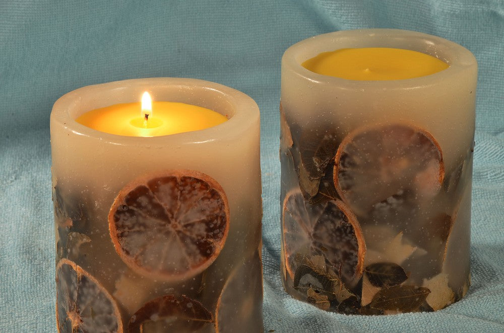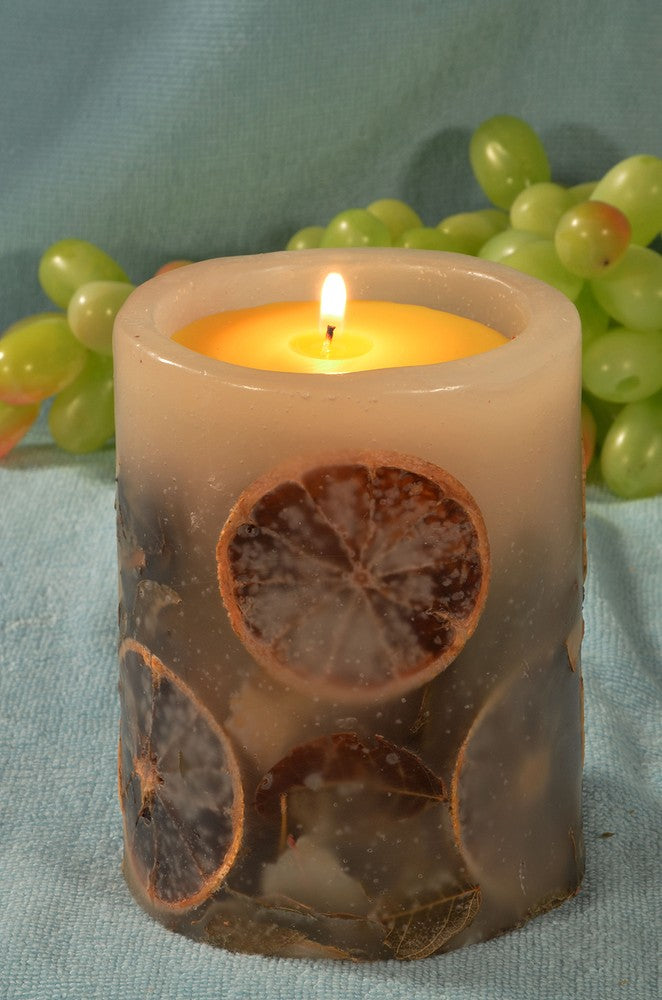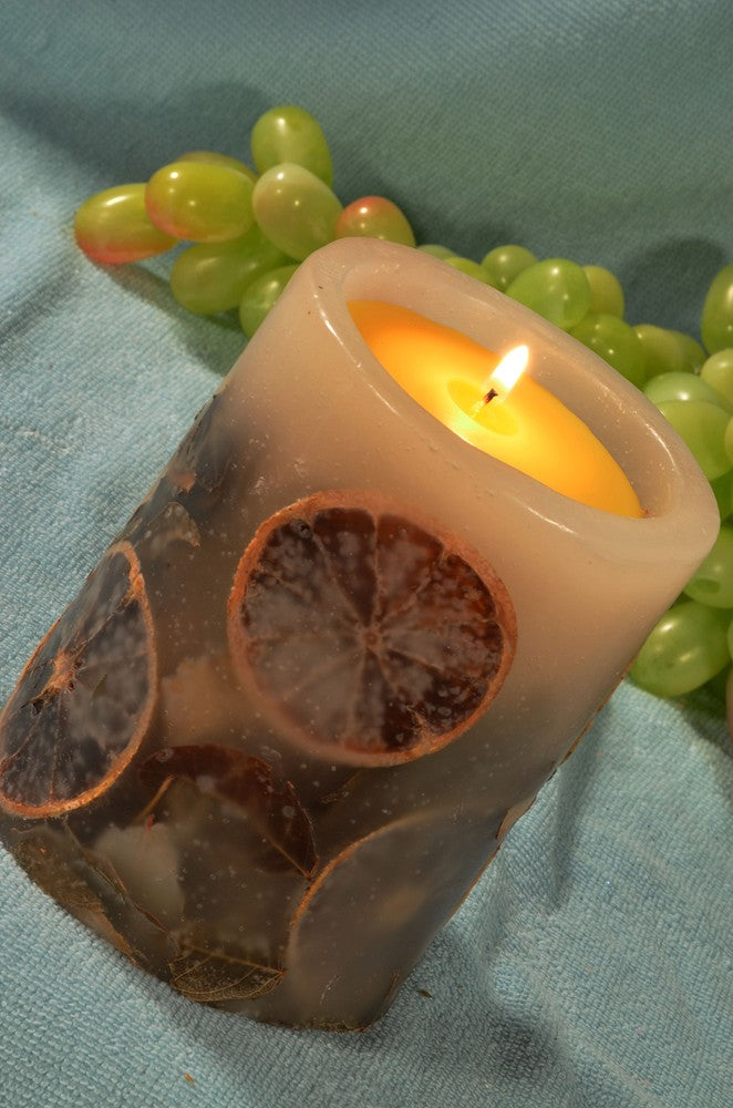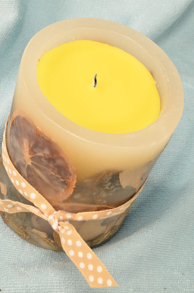 MilanNNE, fruitkaars GROOT, in wit en zacht geel, H: 13 cm