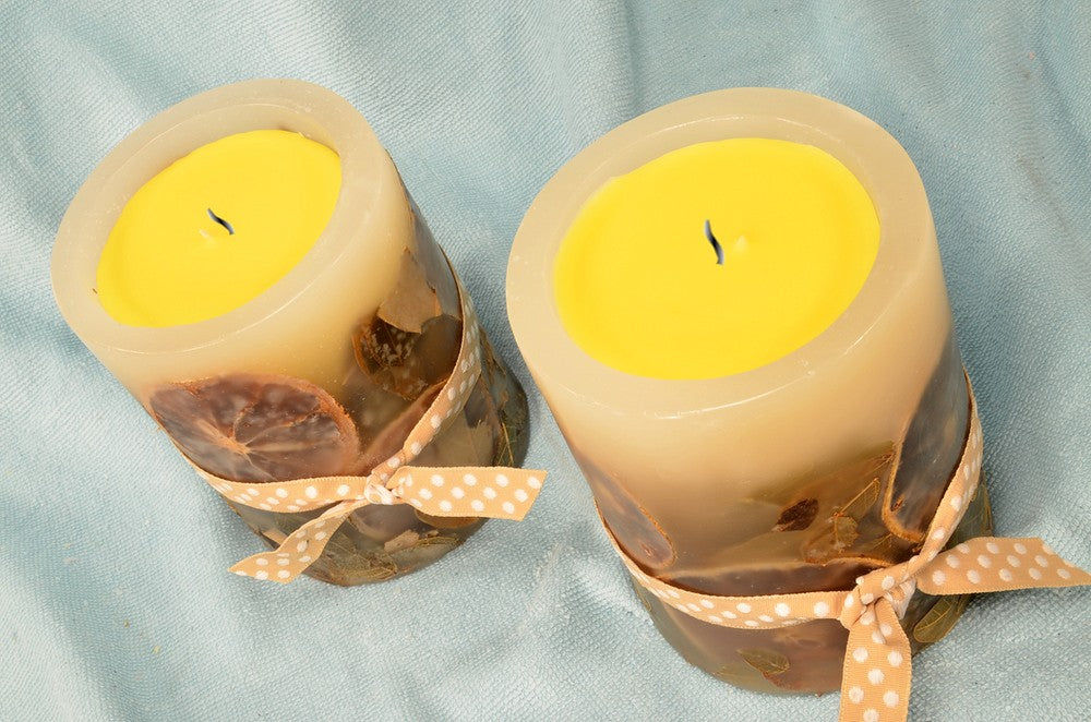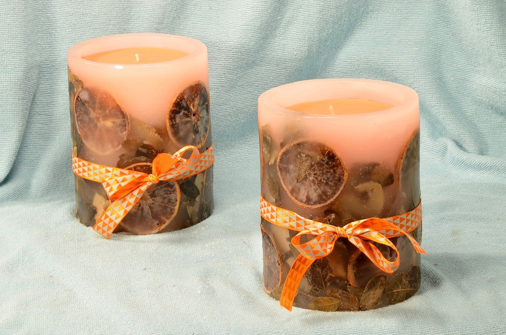 MilanNNE, fruitkaars SUPER XXL, wit en oranje geel, H: 15 cm