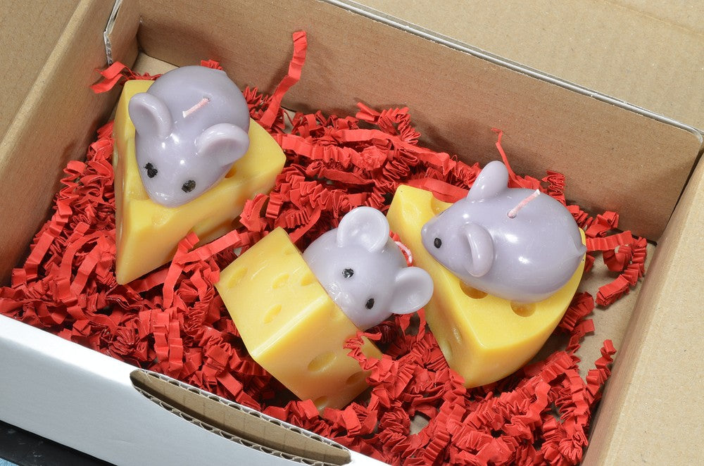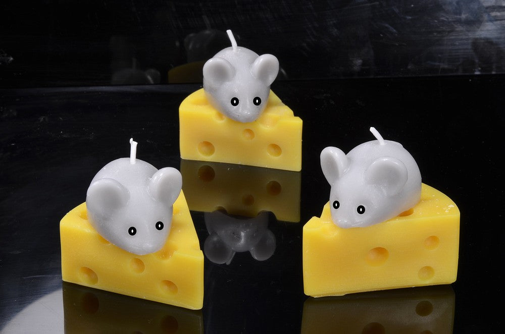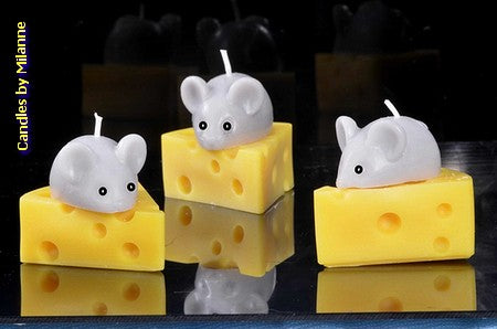 Muis met kaas kaars (set van 3 stuks) GRIJS