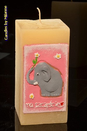 Olifant kaars ROZE Vierkant, H: 15 cm