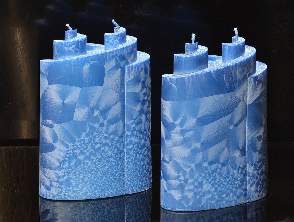 Piaf Kaars met 2 pitten, BLAUW POLYMICO, hoogte: 18 cm