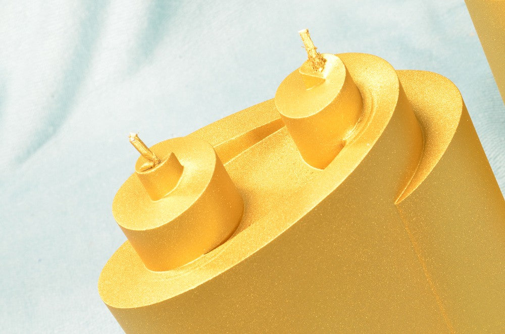 Piaf Kaars met 2 pitten, GOUD metallic, hoogte: 18 cm