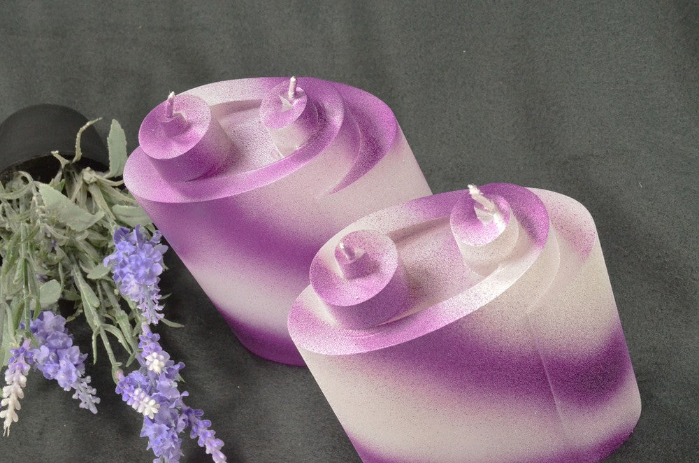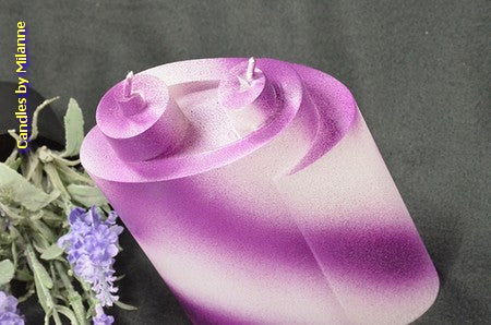 Piaf Kaars met 2 pitten, Paars- wit, hoogte: 18 cm