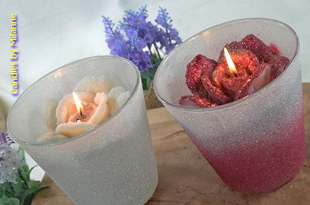 Set van 2 Rooskaarsen in glazen pot, 9x9 cm