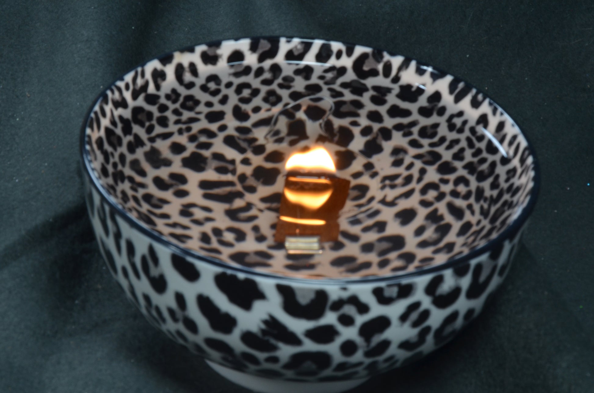 XXL "JUNGLE" gelkaars met 3 cm brede houten pit met Panter print - Gemaakt door Candles by Milanne - BEKIJK VIDEO