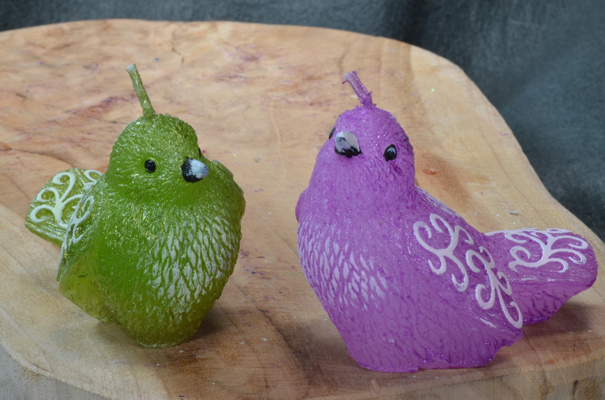 Set van 5 verschillende Vofgeltjes Kaarsen. Allemaal zijn ze met de hand gemaakt.