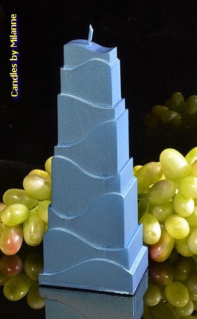 Toren Kaars, BLAUW METALLIC, hoogte: 21cm