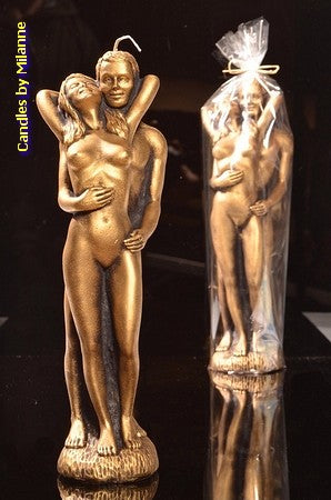 Vrouw en Man kaars, H: 29 cm, GOUD