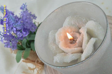 XXL ROOSKAARS wit in glazen pot, 14x13 cm
