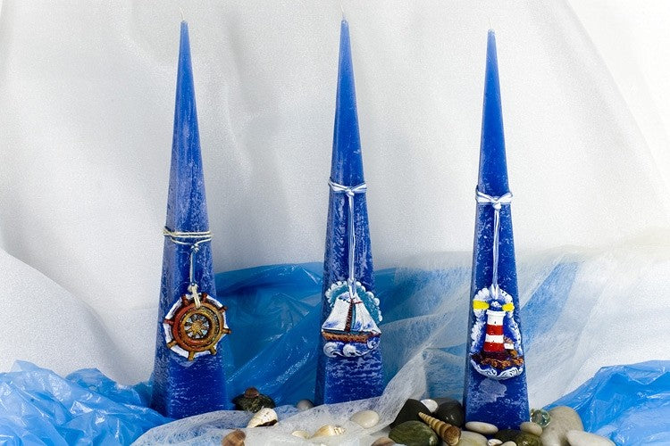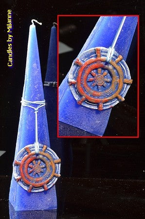 Zee kaars, BLAUW, met stuurwiel, piramide 30 cm